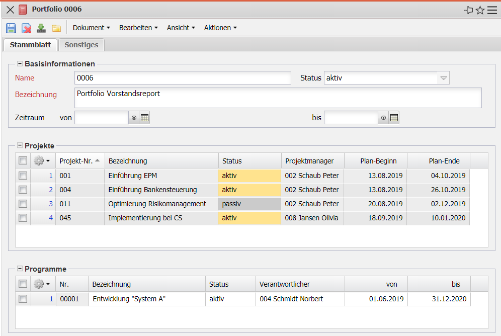 - Programme: Ein Portfolio kann ein oder mehrere Programme umfassen, die hier verwaltet werden können.