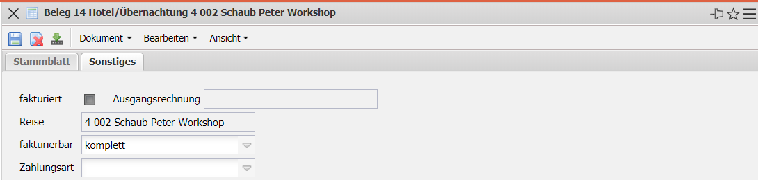 • Reise: Dieses Feld kennzeichnet eine Reise der ein Beleg zugeordnet werden kann. Die Erfassung einer Reise erfolgt in der Maske Reise.