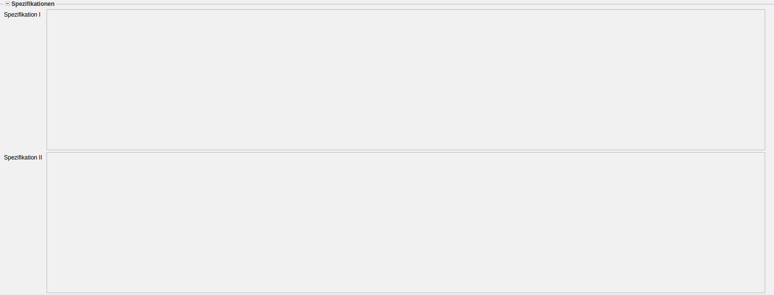 • Spezifikation I/II: Diese Felder zeigen die Spezifikationen an.