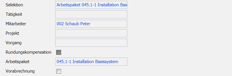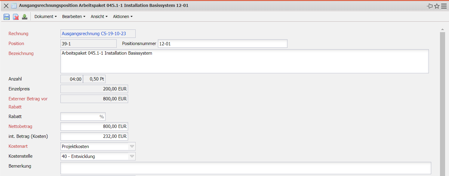 - Arbeitspaket: Dieses Feld zeigt, zu welchem Arbeitspaket die Rechnungsposition zugeordnet wird.