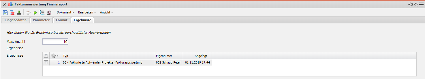 In diesem Reiter befinden sich die maximale Anzahl der Ergebnisse und die Ergebnisse der bereits durchgeführten Auswertungen.
