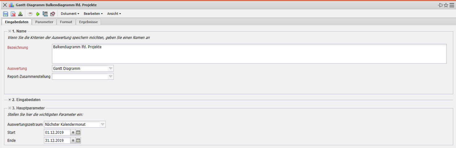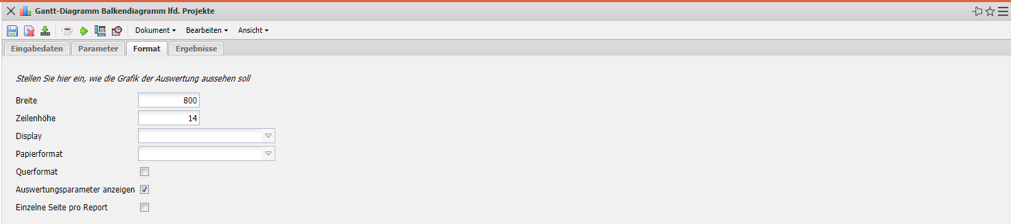 - Periode: Diese Auswahlbox gibt den Zeitraum an, indem das Gantt-Diagramm ausgeführt werden soll.