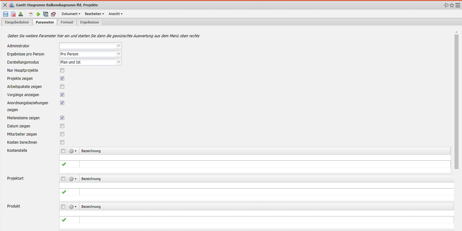 - Nur Hauptprojekte: In dieser Auswahlbox kann bestimmt werden ob nur die Hauptprojekte für das Gantt-Diagramm herangezogen werden.