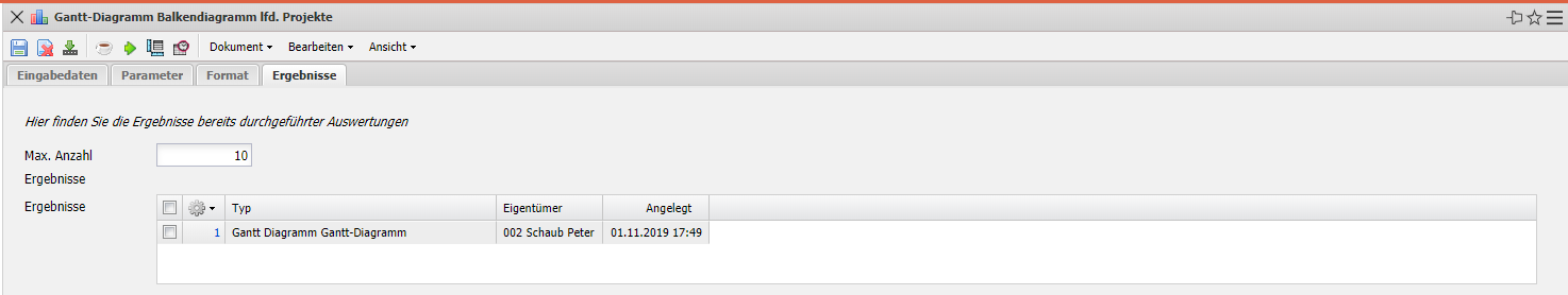 In diesem Reiter befinden sich die maximale Anzahl der Ergebnisse und die Ergebnisse der bereits durchgeführten Auswertungen.