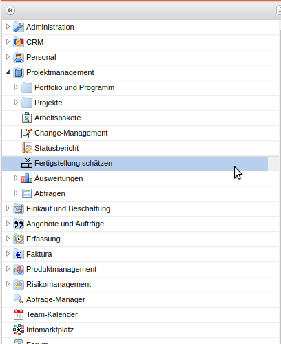 Die Funktion “Fertigstellung schätzen” kann im Menü unter Projektmanagement geöffnet werden.