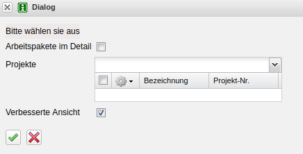 Hier können beliebig viele Projekte die geschätzt werden sollen mit dem Klicken auf den grünen Haken ausgewählt werden.