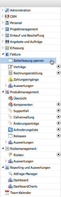 Die Funktion “Zeiterfassung sperren” kann im Menü unter “Faktura” geöffnet werden.
