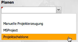 Mit Hilfe der Funktionalität “Planen” können Projekte manuell oder mit Hilfe von Schablonen definiert und geplant werden. Darüber hinaus steht hier optional die MS Project-Schnittstelle zur Verfügung.
