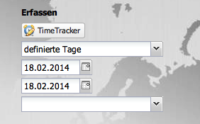 Anmerkung: Die Auswahlbox unter dem zweiten Datumsfeld ist für die Erfassung auf andere Mitarbeiter und nur für Poweruser verfügbar (Einstellung in der TimeTracker_Default).