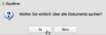 Da eine solche Suchanfrage über alle Daten im System je nach Datenmenge etwas dauern kann, erscheint ein entsprechender Warnhinweis.