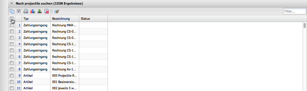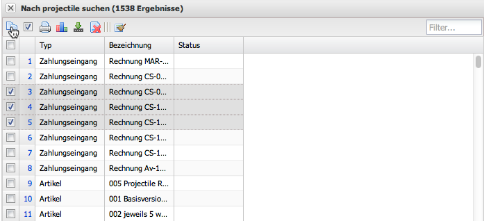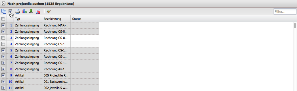 Alle Trefferergebnisse können gleichzeitig markiert werden.