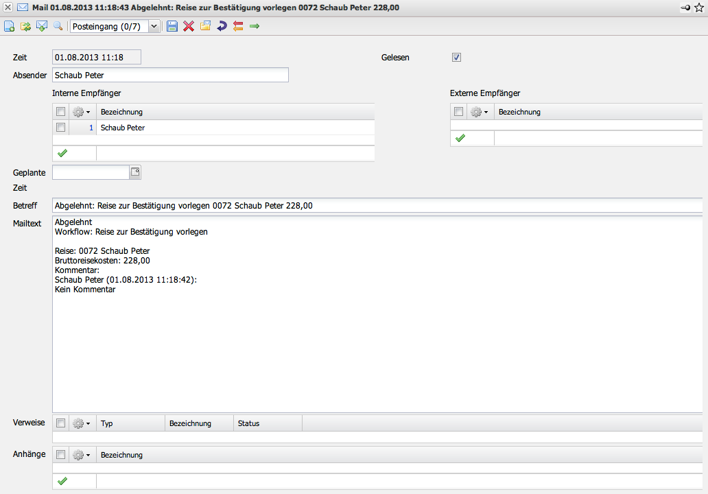 Im zentralen Bereich des Mailsystems wird die aktive Nachricht im Mailordner dargestellt und …