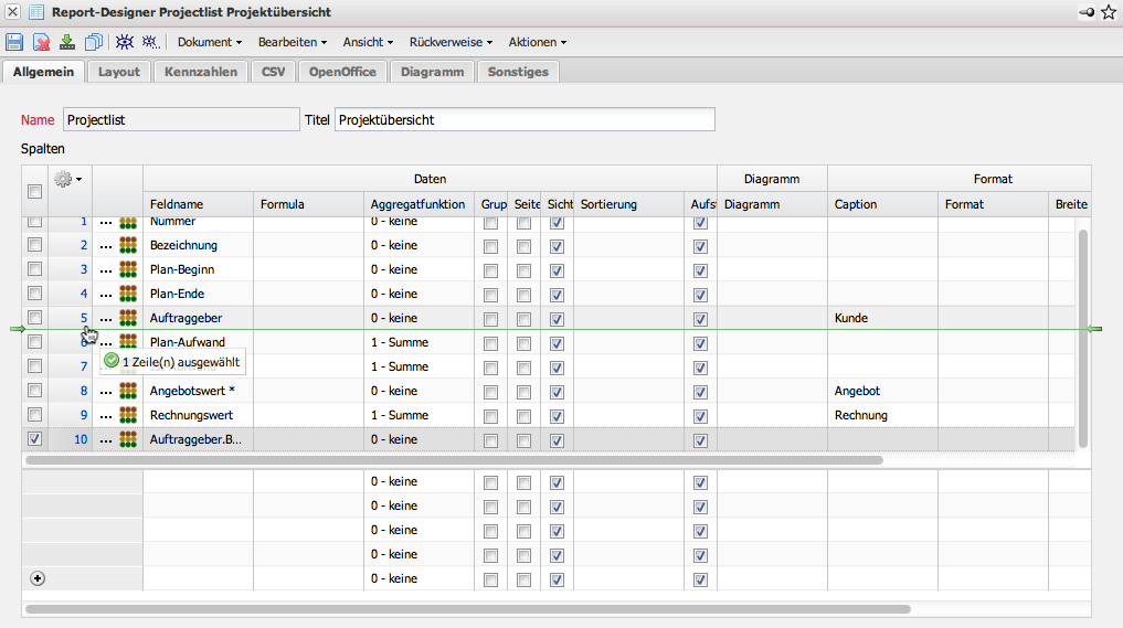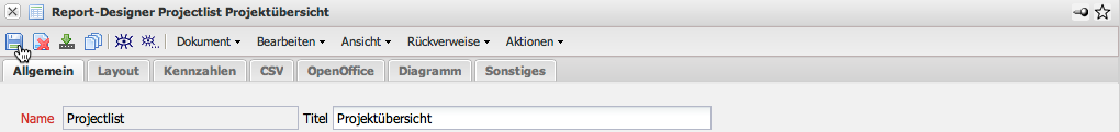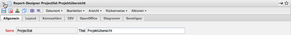 Im folgenden Beispiel werden die erweiterten Funktionalitäten des Designers anhand der “Projectlist” erläutert.