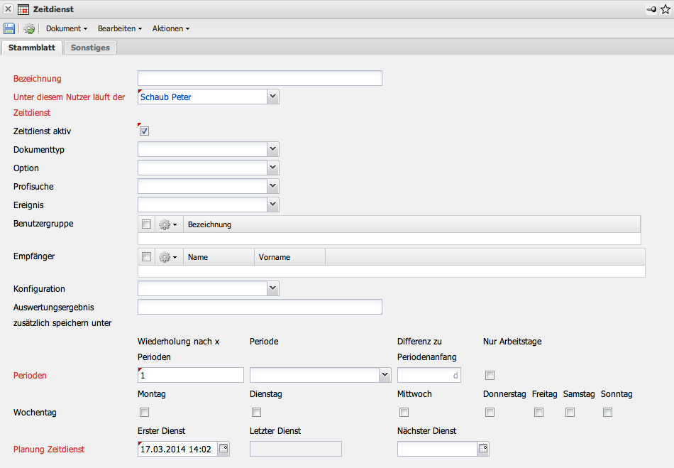 Zunächst wird ein neues Dokument vom Typ Zeitdienst …