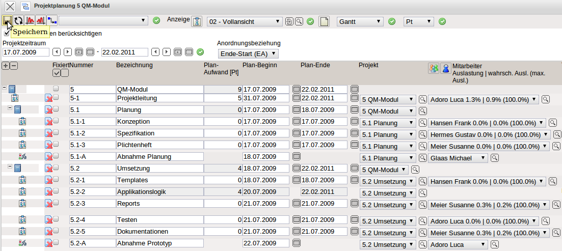 … wird der Projektplan abgespeichert.