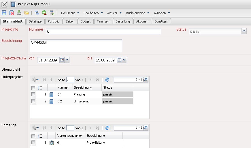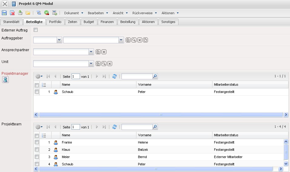 … die Bearbeiter der Aufgaben sind in das Projektteam übertragen worden