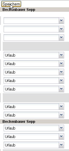Im zweiten Beispiel wird beim Mitarbeiter Peter Schaub Urlaub erfasst …