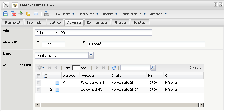 Auf dem Reiter “Vertrieb” (Beispielimplementierung):