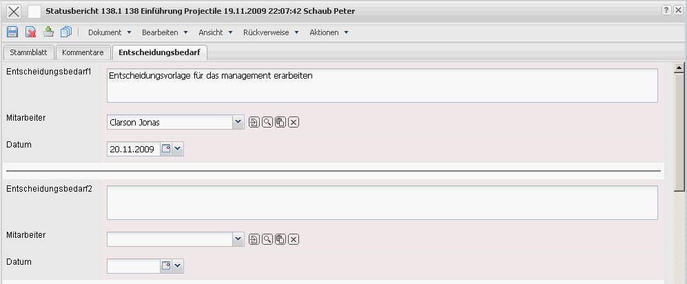• Datum: In diesem Feld kann das Datum, an dem der Entscheidungsbedarf abgeschlossen werden soll, eingetragen werden.