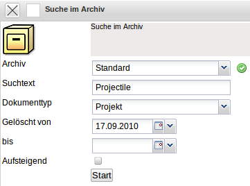 Alle gelöschten und/oder archivierten Datensätze von Projectile werden bei Verwendung des Archivs während des Löschvorgangs als XML-Daten auf den Webserver abgespeichert. Mit Hilfe des Archivs können diese Daten selektiert und wieder in die Datenbank überführt werden.