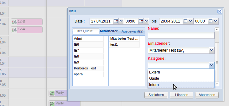 • Wird eine Unit ausgewählt werden die Mitarbeiter der Unit zu Mitarbeiter Auswahl hinzugefügt.