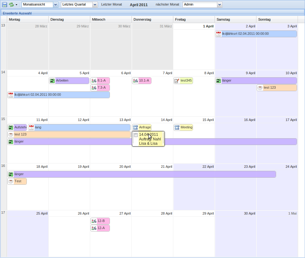 Es kann passieren, dass nicht alle Einträge angezeigt werden in diesem Fall erscheint beim betreffenden Tag unten rechts eine Nummer.