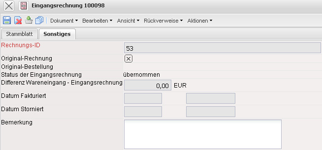 • Datum Storniert: Bei der Stornierung der Eingangsrechnung wird hier das Datum und die Uhrzeit vom System gesetzt.