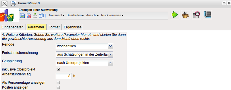 Tipp: Mehr zu diesem Thema erfahren Sie im Abschnitt 3.12.01 Bedienung der Auswertungen und 3.12.02 Earned Value Analyse