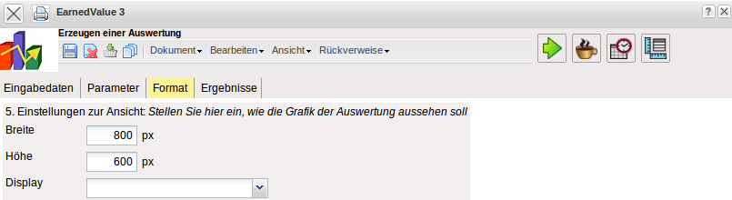 - Breite: Mit diesem Feld wird die Breite in Pixel (px) der graphischen Auswertung festgelegt.