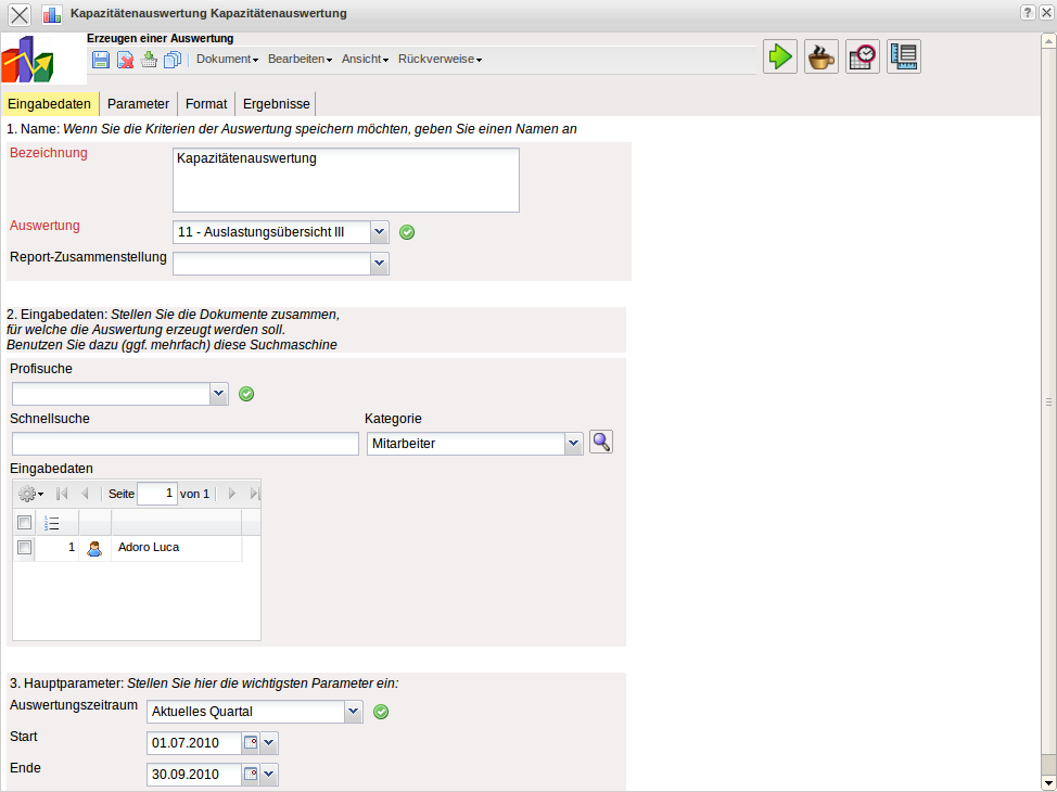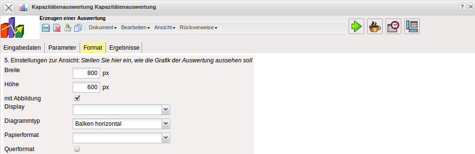 Tipp: Mehr zu diesem Thema erfahren Sie im Abschnitt Bedienung der Auswertungen und Kapazitätenauswertung.