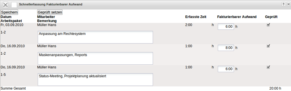 Anmerkung: Diese Funktionalität ist auch im TimeTracker verfügbar und kann in der TimeTracker_Default (siehe Administrationsleitfaden) konfiguriert werden!