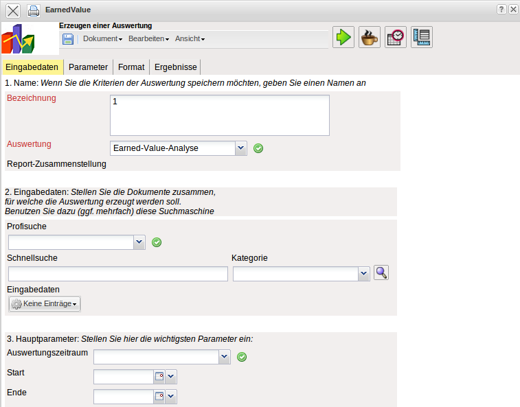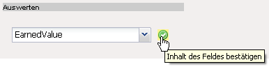 Nach Auswahl einer Auswertungsart (hier EarnedValue) öffnet sich …