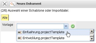 Bei der Auswahl der Option Projektschablone erscheint ein neuer Dialog …