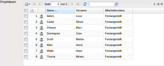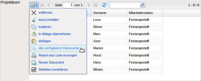 Eine Mehrfachauswahl wird entweder automatisch durch Systemfunktionalitäten oder manuell definiert. Eine solche Systemfunktionalität ist beispielsweise das Projektteam im Dokument Projekt. Hier werden alle Bearbeiter der Arbeitspakete automatisch übertragen.