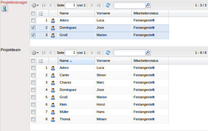 Im folgenden Beispiel sollen zwei Mitarbeiter aus dem Projektteam zum Projektmanager “befördert” werden. Dazu werden die Teammitglieder zunächst markiert, dann kopiert und …