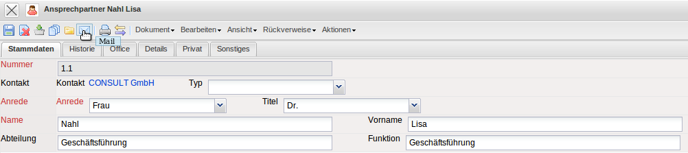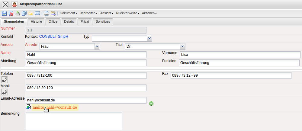 Im Kontaktsystem kann für jeden Kontakt, Mitarbeiter oder Ansprechpartner wahlweise der E-Mail-Link oder die Mailfunktionalität verwendet werden. Der Link auf die E-Mail-Adresse …