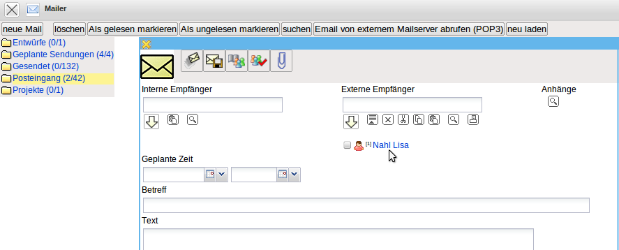 Falls das optionale Mailsystem Mailer verwendet wird, kann auch aus der Funktionsleiste der Mailer …