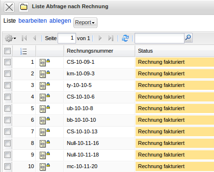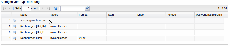Im folgenden Beispiel soll eine Abfrage über die Rechnungen erstellt werden:
