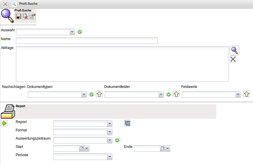 Für die Nutzung der Profi-Suche können Rechte (Administration - Aktionen; siehe auch Administrationsleitfaden) vergeben werden.