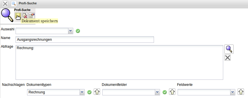 Rechnung: bedeutet, dass die Basis dieser Suchabfrage das Dokument Rechnung ist. Das Ausführen dieser Abfrage mit