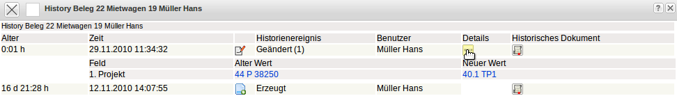 können (bei entsprechender Berechtigung) die Änderungen in der Maske eingesehen werden.