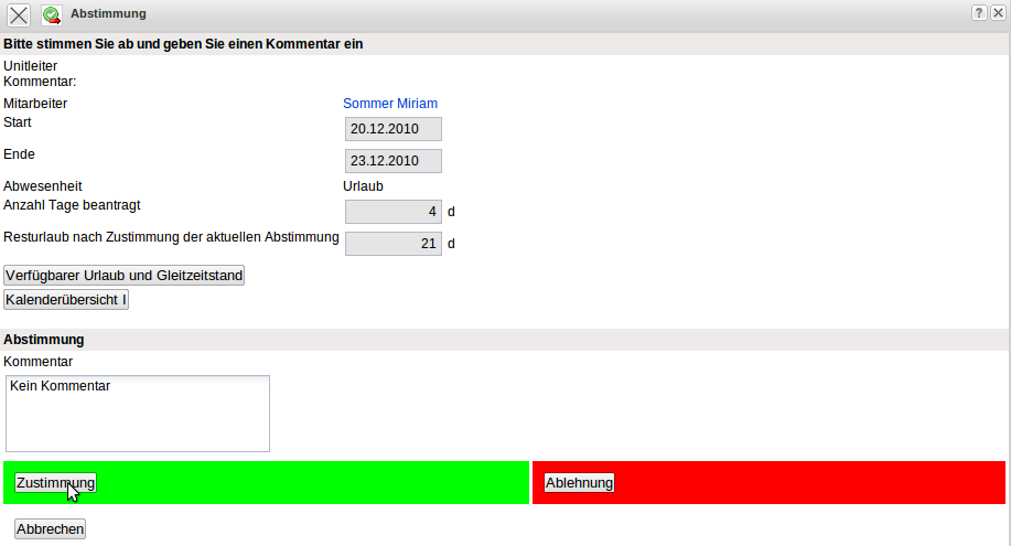 … der Urlaub genehmigt oder abgelehnt werden.