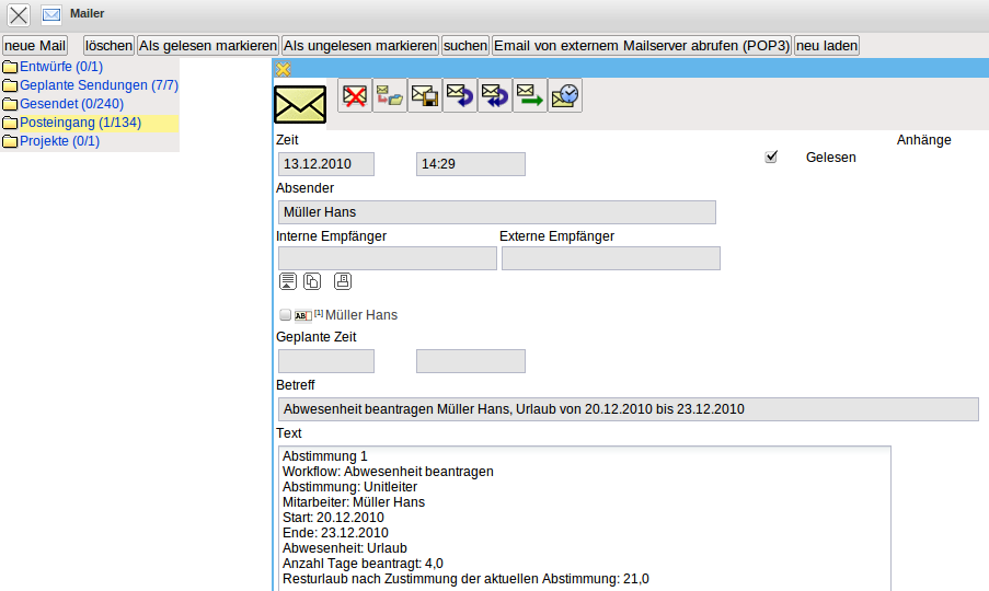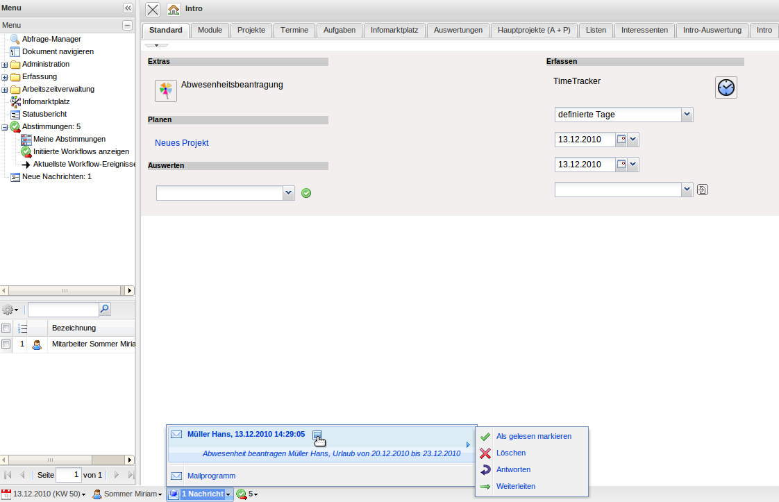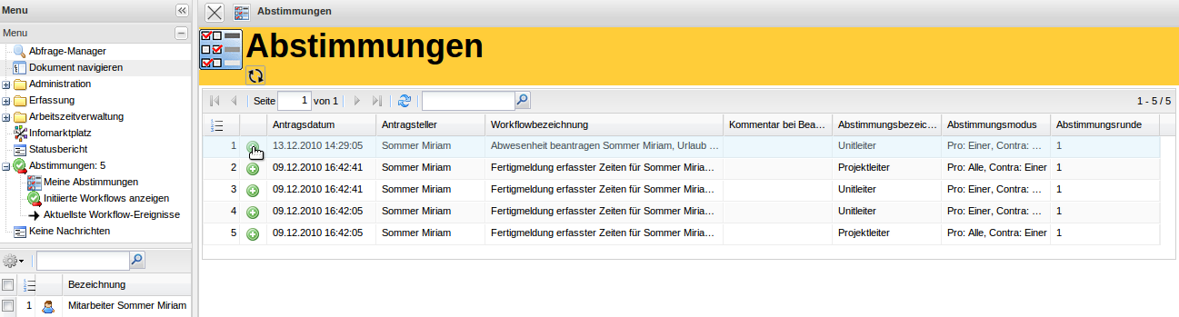 Über die Abstimmung wird der Mitarbeiter über eine interne Benachrichtigung informiert.