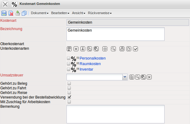 Diese Unterkostenart wird dann automatisch in die Oberkostenart übertragen.