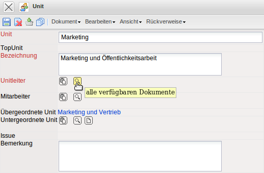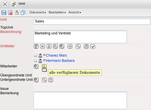 Im folgenden Beispiel wird eine neue Unit “Sales” mit zwei untergeordneten Units definiert. Für die Definition der Unitleiter wird mit Hilfe der Funktionalität “alle verfügbaren Dokumente” eine …