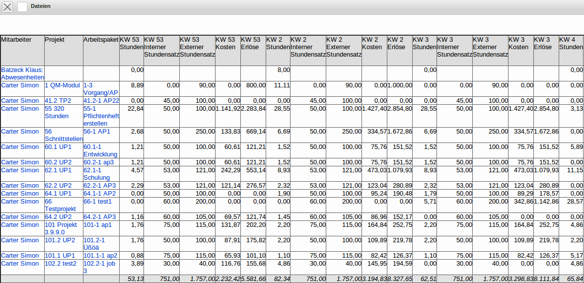 Für Projektleiter wird oft folgende Version vom Administrator zur Verfügung gestellt (ohne internen und externe Sätze, konfiguriert im ReportDesigner):