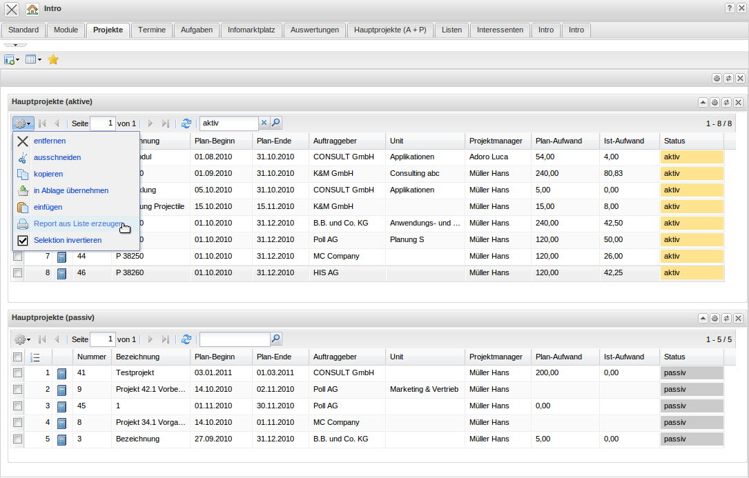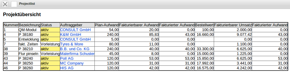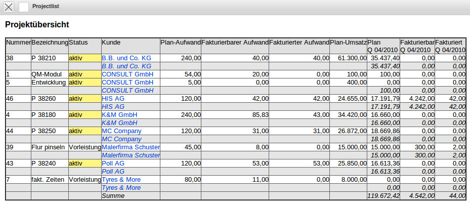 Im folgenden Beispiel werden in einer Projektübersicht Kennzahlen ohne Abgrenzung verwendet.