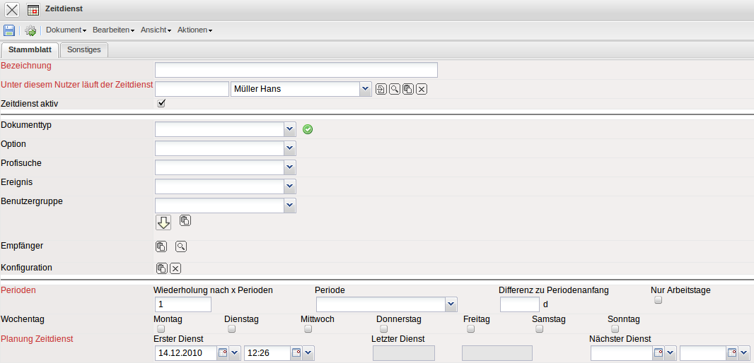 Zunächst wird ein neues Dokument vom Typ Zeitdienst …