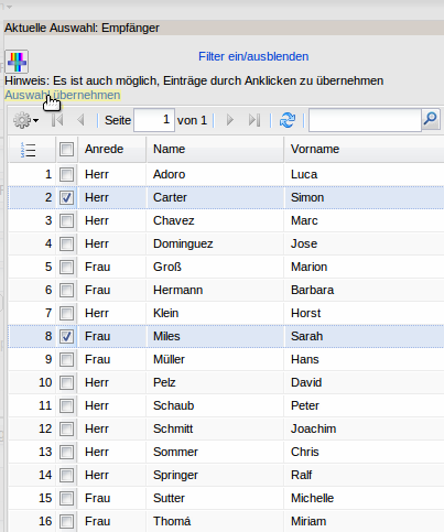 Nach Auswahl übernehmen werden die Mitarbeiter automatisch in den Zeitdienst übernommen.