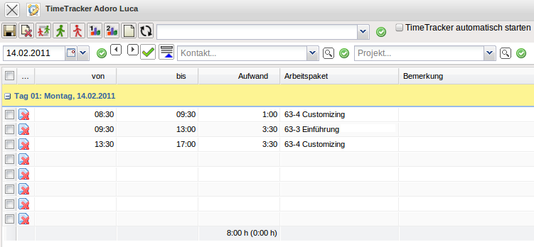 Der “TimeTracker” ist ein Werkzeug zur Erfassung von Zeiten (Projekt- und Arbeitszeiten sowie Abwesenheiten).